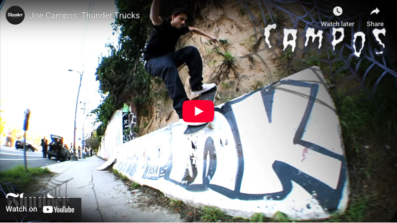 03 Feb JOE CAMPOS: THUNDER TRUCKS Posted at 16:11h in Thunder, Videos by Soder 0 Comments 0 Likes Share Joe Campos comes through with some quick LA hits for the release of his new Pro Inverted Thunder Trucks. Available now in skate shops worldwide. 148 – 8.25” & 149 – 8.5”. Video By Michael Nicholas. Tags: campos, thunder, trucks, Videos