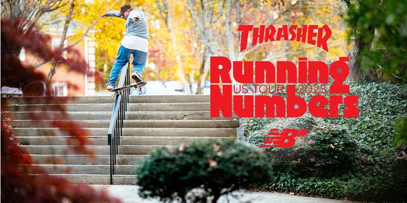 27 Feb NB NUMERIC’S “RUNNING NUMBERS” US TOUR 2025 Posted at 09:04h in Numeric, Skate Trip, Skateboarding, Thrasher, Videos by Ernie 0 Comments 0 Likes Share We hit the road with New Balance for a whirlwind tour across the States. Foy, Tiago and the top-notch team put on an unforgettable show, demolishing every spot and demo in their path. Tags: new balance, new balance numeric, Skate Trip, Skateboarding, Thrasher, Videos